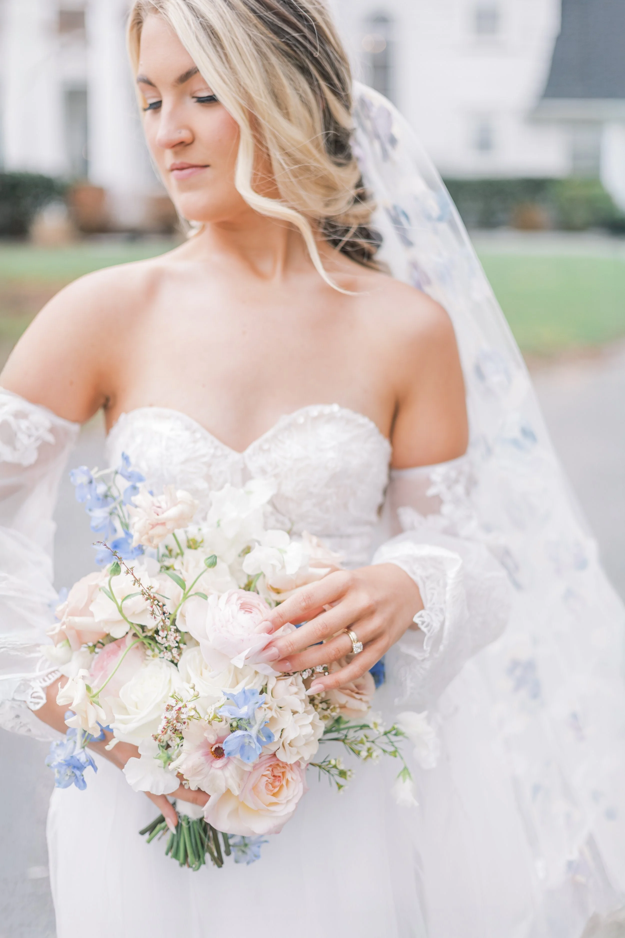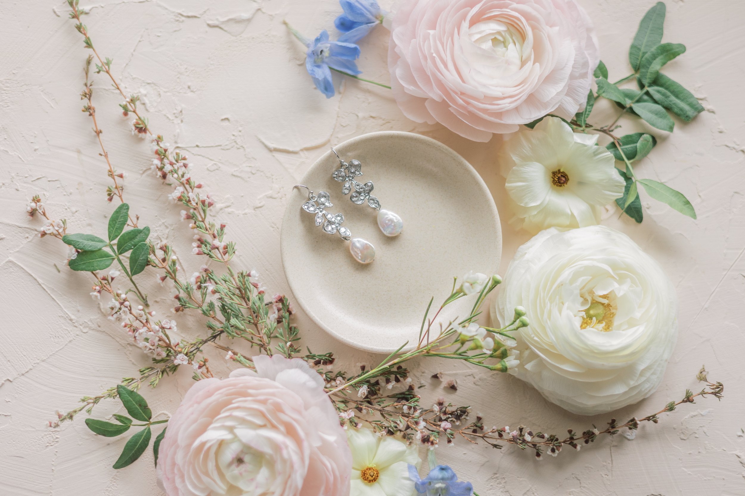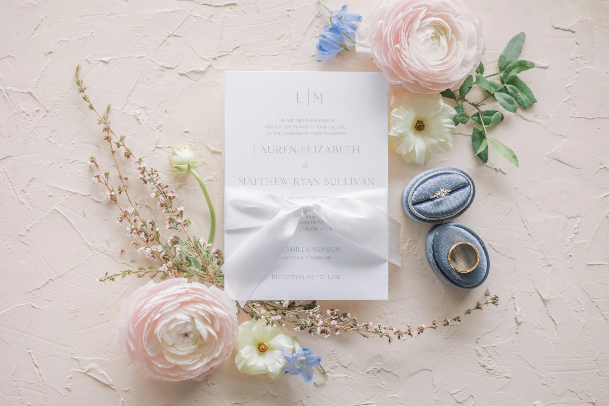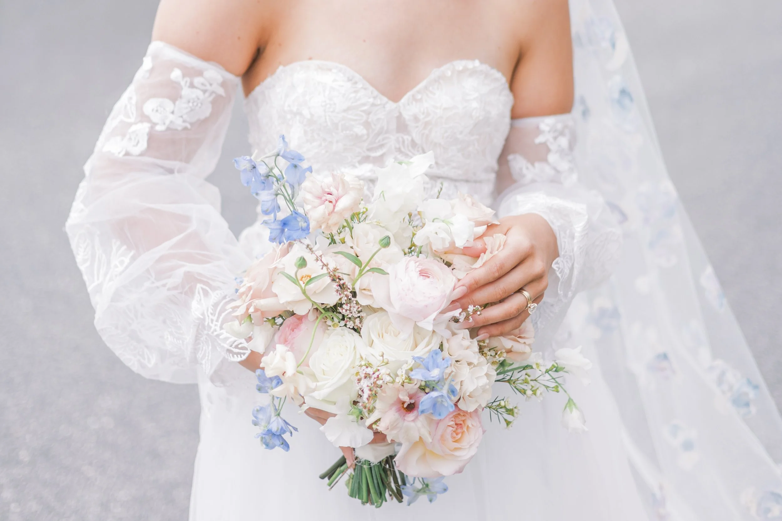 Pale blues, soft blush tones, and creamy whites were woven throughout the design—from the garden-inspired bouquet to the refined flat-lay details. The stationery and accessories complemented the overall aesthetic without overpowering it, keeping the focus on craftsmanship, texture, and restraint.
