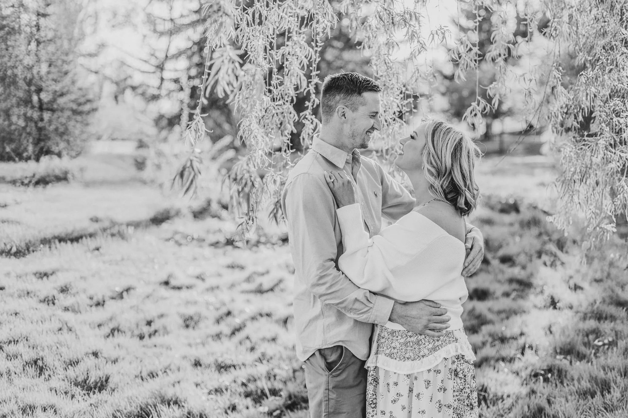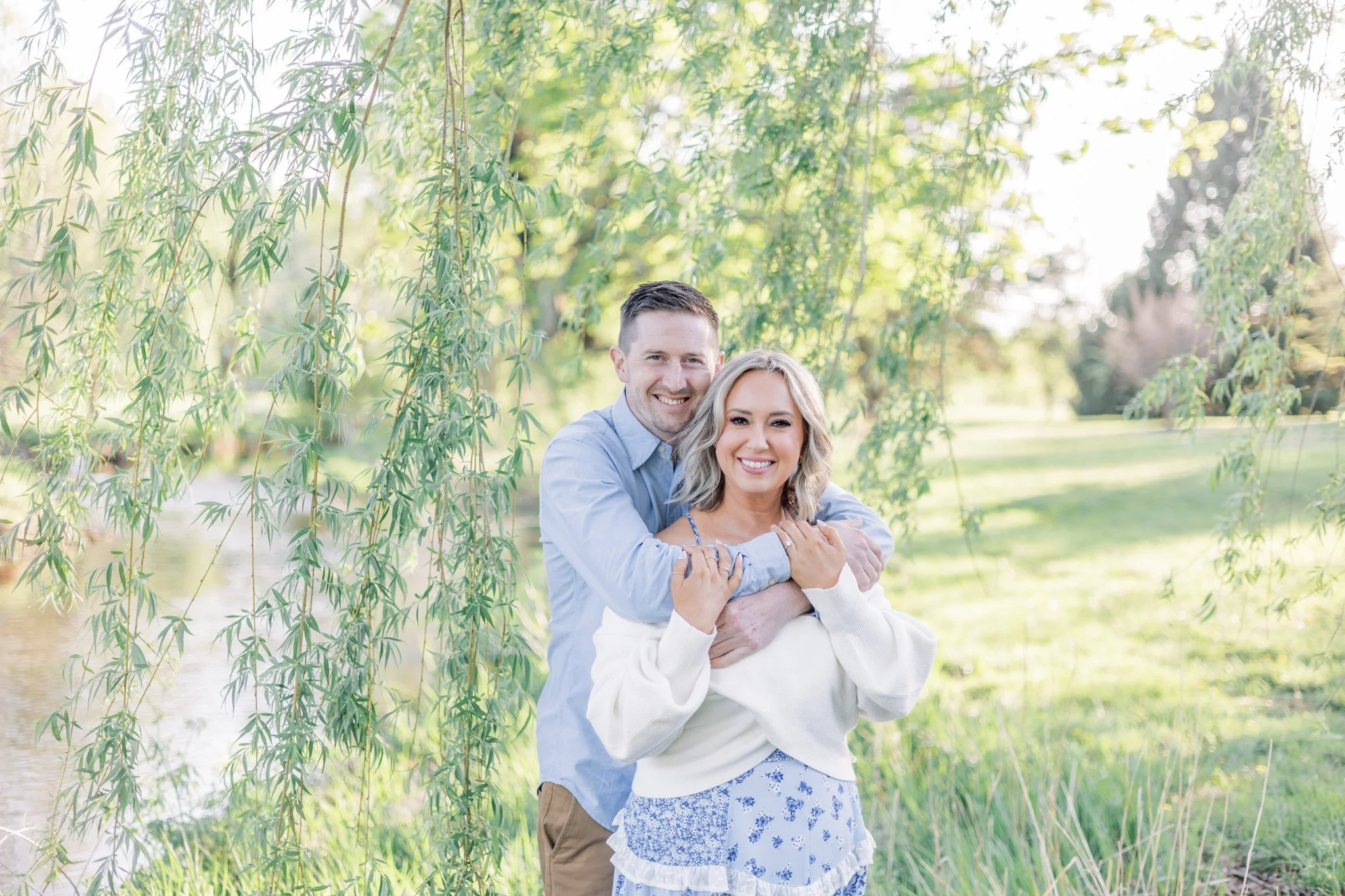 We wandered through the grounds, stopping by a quiet stream crossed by a charming little bridge and a stunning weeping willow tree that framed the scene beautifully. The light danced through the trees, creating a dreamy glow that made every photo feel effortless and intimate.